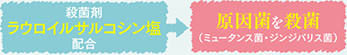 歯の再石灰化を促進し、象牙質の耐酸性を高め、カルシウム溶出を抑制して虫歯を予防します。