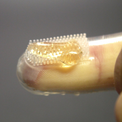 犬種にもよりますが、片手で愛犬を抱えて付属のシリコ―ン製指ブラシにジェルを取りながらブラッシングが出来ますので、ブラッシング中のジェルの追加がらくらく!