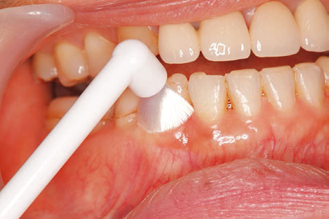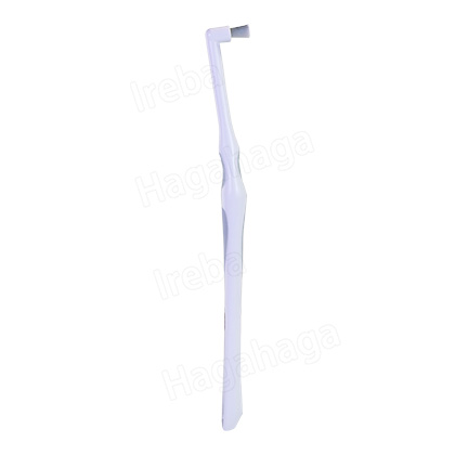円錐型よりもあたりが柔らかく、面で当たるので、しっかりプラークを除去できる。擦過傷を起こしやすい付着歯肉の少ないインプラントや歯肉の下がってしまった方へ歯肉にやさしいシングルタフトブラシです。