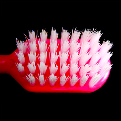 長いハンドルのため、手のひら全てで握ることができます。小指の力もハンドルに加わるので安定したブラッシングが出来ます。