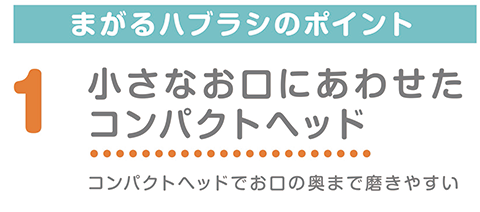 小さなお口に合わせたコンパクトヘッドで、お口の奥まで磨きやすい。
