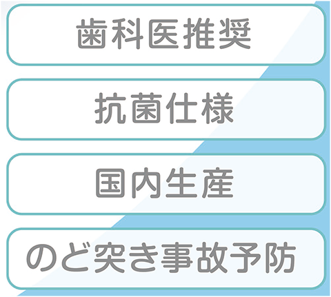 歯ブラシを口に入れたまま遊んだり走ったりしないようにご指導ください。転倒すると喉突き事故の危険性があります。