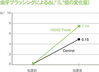 健常歯5歯に対して、ハザックペースト及び従来品を用いて、清掃前後の歯面を色差計で測定した結果、ハザックペーストは、