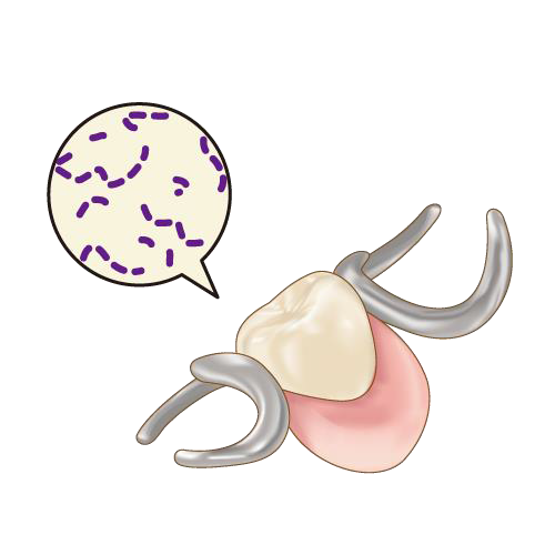 • 部分入れ歯の場合、クラスプがかっている歯が、う蝕歯周病になりやすくなる