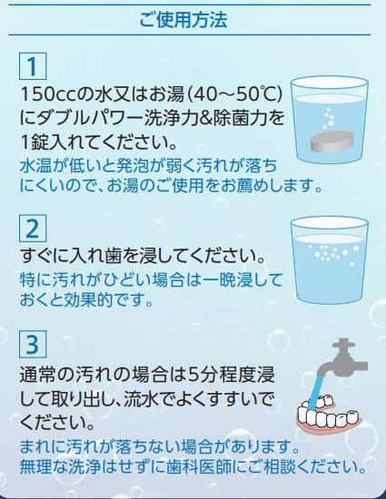 おそよ5分で洗浄完了!のダブルパワーは部分入れ歯に適しています。