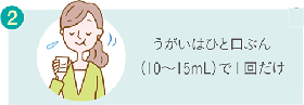 - うがいはひと口ぶん(10〜15ml)で1回だけ