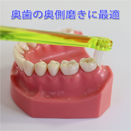 ワンタフトブラシだと良く磨けてない感じの一番奥の奥側に最適な植毛を45度カットした部分みがき用歯ブラシです。