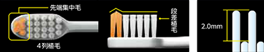 4列植毛による安定感と、コンパクトなヘッドとハンドルによる磨きやすさをあわせもった歯ブラシです。