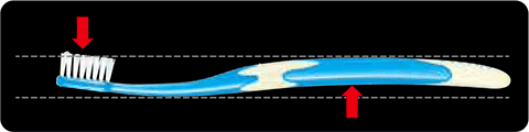 一方、ハンドル部にネックとは逆角度を付け、角度を相殺(オフセット)することで「毛先の高さ」と「ハンドルを持つ指の高さ」が同じになり、ストレートハンドルと同じような前歯部の磨きやすさも得られます。