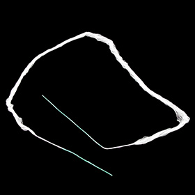 緑色部分は狭い隙間へ挿入する為の糸通しと持ち手部分の役目を果たす硬めのスレッドです。